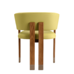 Solid ash wood frame in a walnut stain with an upholstered artificial leather seat and back. Leg ends finished in matte brass electroplated stainless steel.