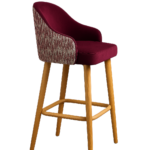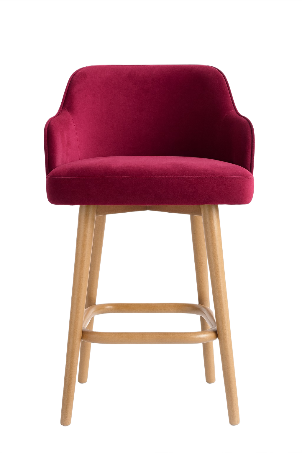 A velvet seat brings softness while a textured-fabric back adds depth and character. The solid beech wood frame is stained in an Iroko tone and completed with a natural oil finish.