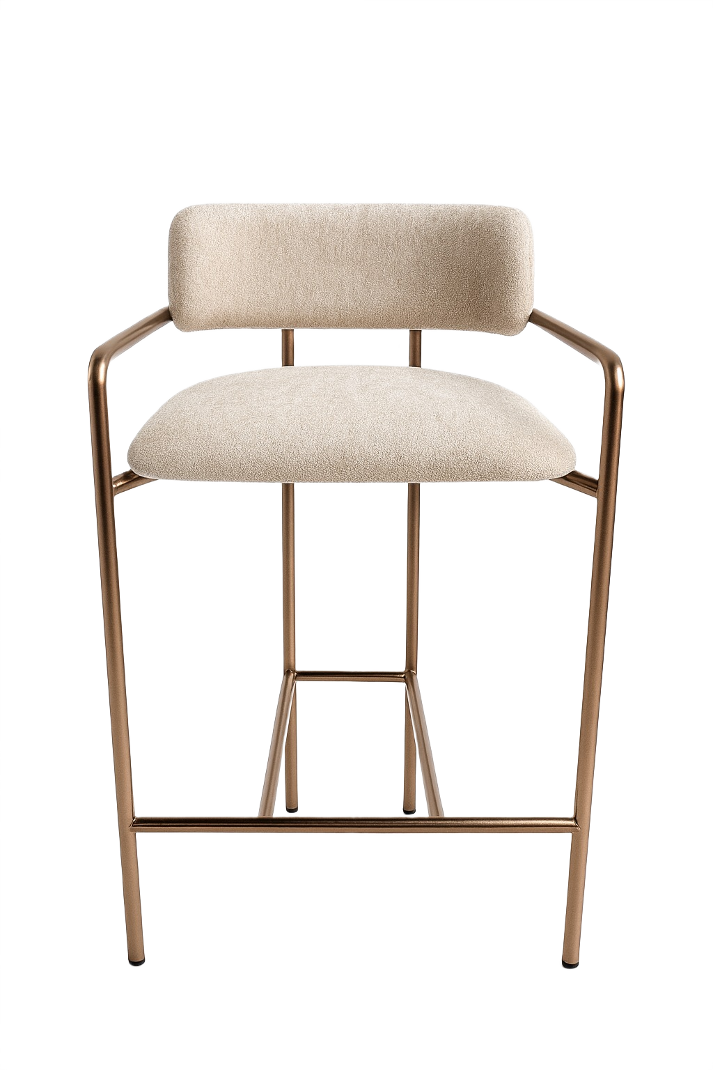 The frame is stainless steel with an electroplated finish, and the seat and back are upholstered.