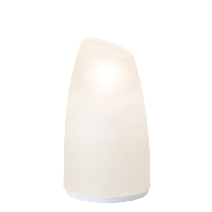 The timeless Little Margarita’ cordless lamp features a hand-blown asymmetric frosted glass diffuser on stainless steel base providing an omnidirectional soft ambient light.