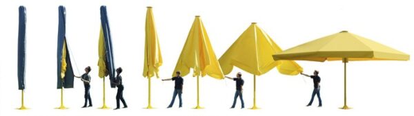 The MacSymo is a real giant parasol opens and closes easily above the tables and chairs, thanks to our telescopic system.