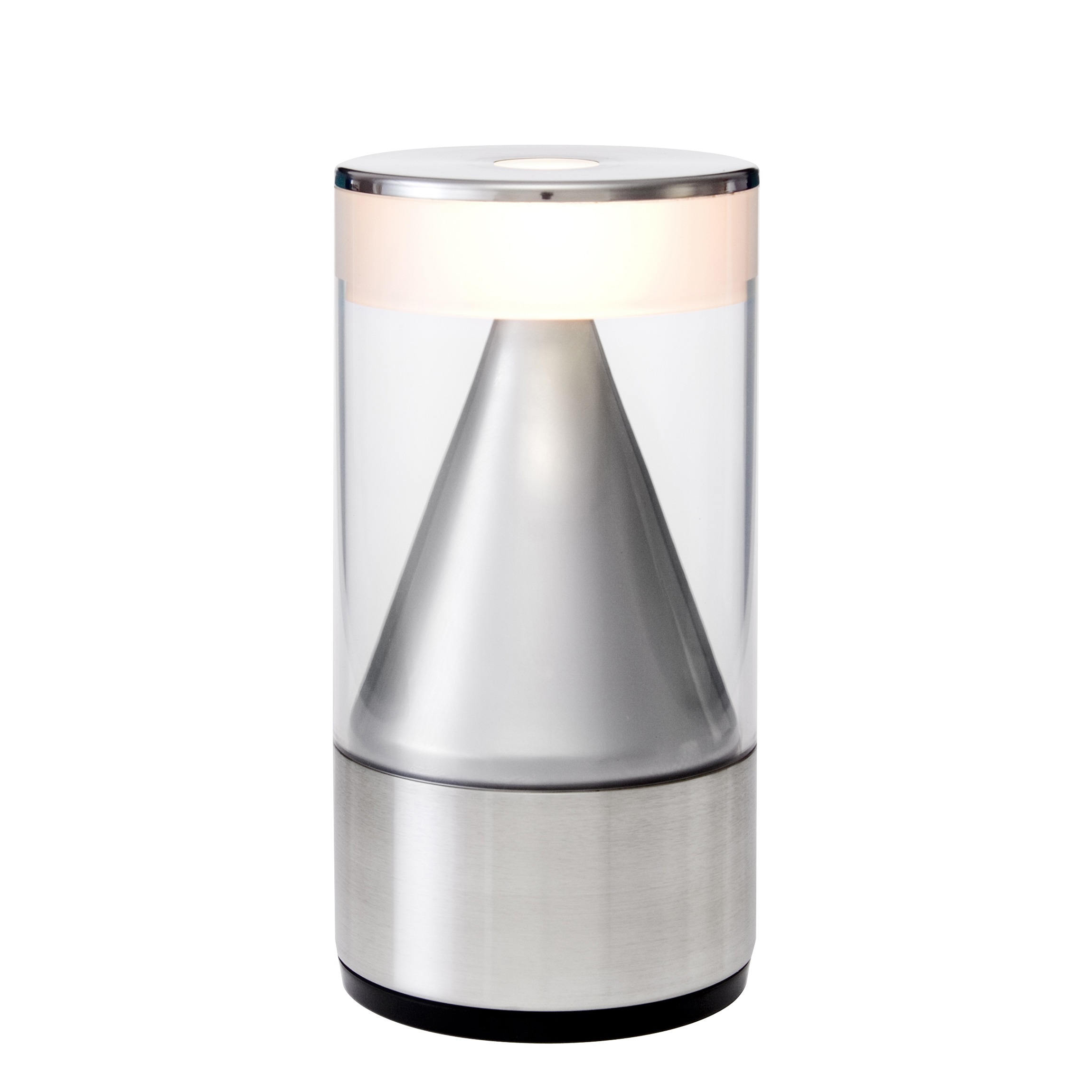 With a brushed metal body and a partially frosted acrylic diffuser, the lamp provides a direct downlight and a soft ambient side light that create a cozy and elegant atmosphere.