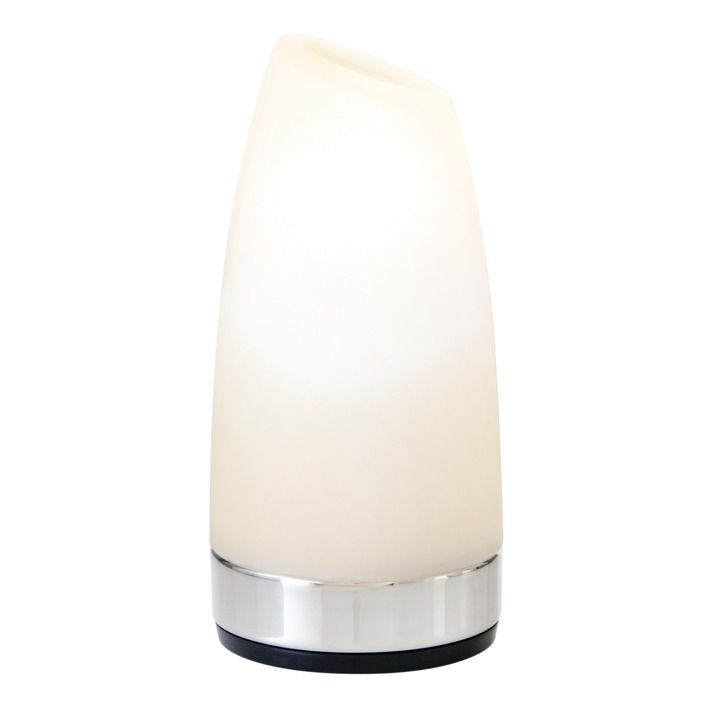 A design collaboration between Peter Ellis and David Skelley of DJCoalition, the Margarita’ cordless lamp features a hand-blown asymmetric frosted glass diffuser on stainless steel base providing an omnidirectional soft ambient light.