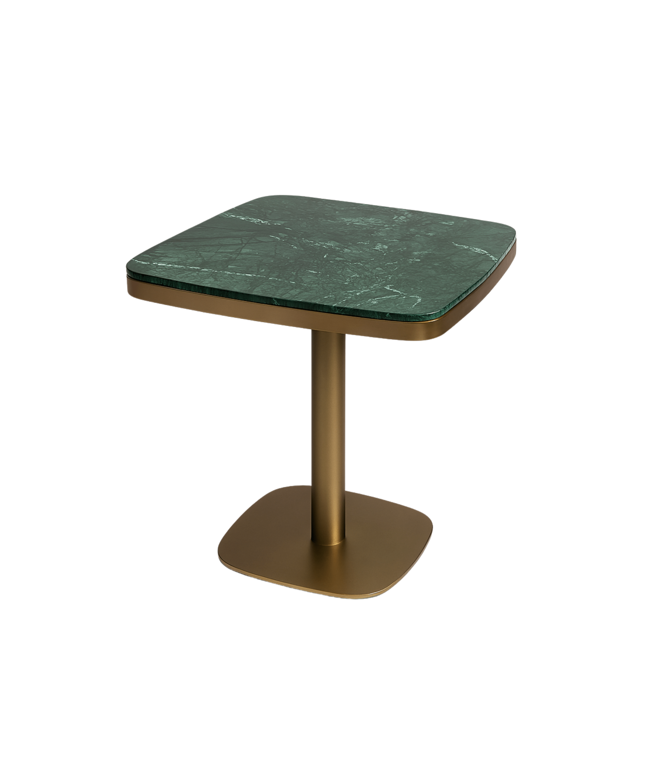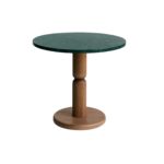 The top is inset with Indian green marble featuring straight-cut edges and supported by an MDF underlay. A stainless steel electroplated top plate adds structure, while the base is crafted from solid ash wood with a stained finish.