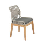 W 570 x D 590 x H 840 – SH 450 MM / Powder Coated Steel Shell / Iroko Wood MV Legs / Woven Synthetic Cord Dia 5/7.5 Shell / Seat Cushion Included / Fabric Cost Not Included (+0.6M)