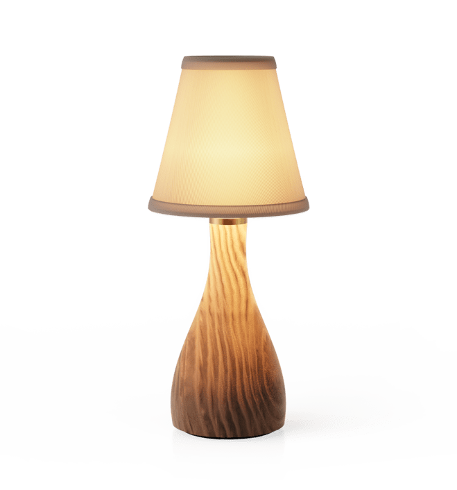The Owl 1 cordless lamp showcases a polished body that incorporates a dome reflector. The selection of the dome reflector design was based on its capability to offer unobstructed downward light without causing any glare.