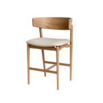 Crafted from solid ash wood with a warm stained finish, this barstool features a gently curved backrest and clean, minimal lines. The seat is upholstered in leather for added comfort and a refined touch perfect for bar counters.